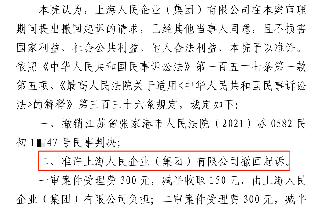 潍坊胜诉佳讯 | 人民企业系列案苏州六案上海人民公司撤诉
